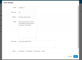 - View details – here you can view a form with all fields, leave inner comment and change status of the request.